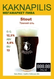 GAVA Stout - це чорне, насичене та щільне пиво зі збалансованим смаком, в якому відчуваються нотки карамелі і кави. Післясмак має відтінок паленого солоду, що додає пиву глибину. Загальний враження від пива - це багатий оксамитовий смак, який шанувальники темних сортів пива точно оцінять.
