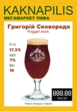 Григорій Сковорода - роггенбок, що ламає стереотипи, як і його видатний тезка. Поєднання ферментованого житнього та пшеничного солоду створює складний, пряний характер, а класичні вайценові дріжджі додають оксамитової мʼякості та фруктово - ефірних нот.
